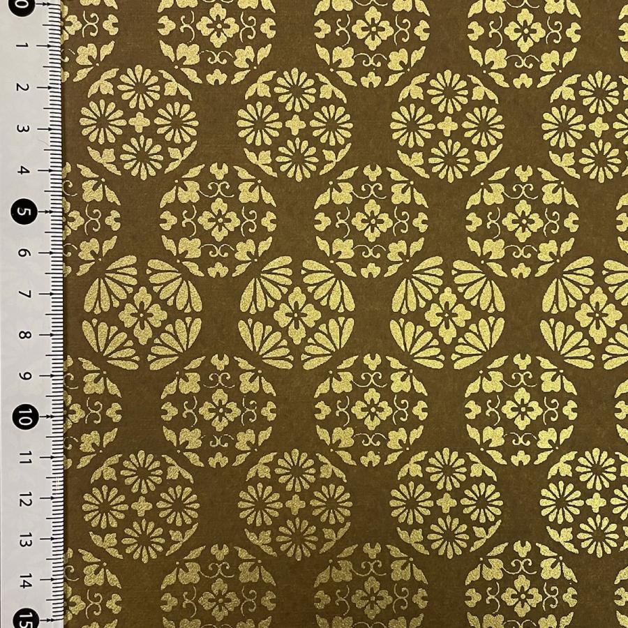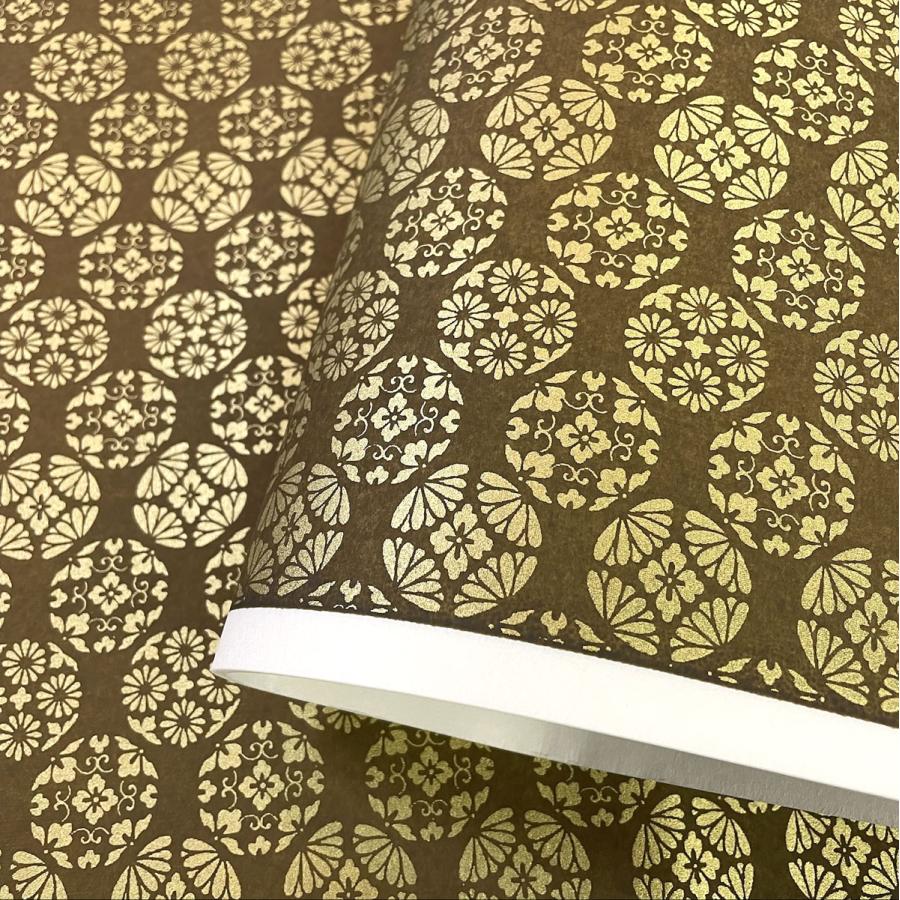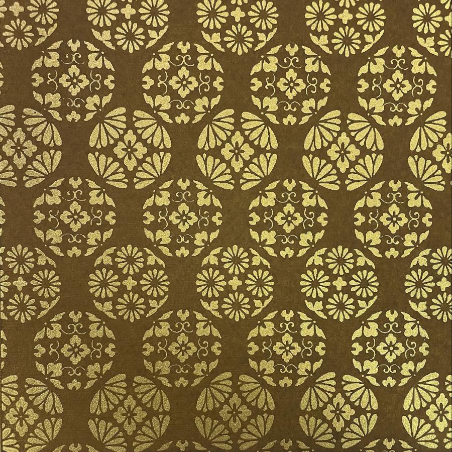 着物の紋様や柄を色無地に金でプリントをした和紙です。折り紙、和紙人形、小物作り等々のクラフトにお使い頂けます。サイズ: 630mm x 930mm (柄により若干誤差があります。)産地: 京都備考: 機械漉和紙