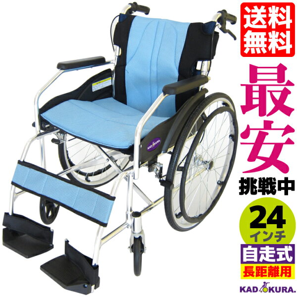 車椅子 コンパクト 軽量 折り畳み カドクラ チャップス スカイブルー A101-ALB 自走介助兼用 介護 車イス 車いす 全10色 送料無料 24インチ Lサイズ