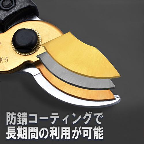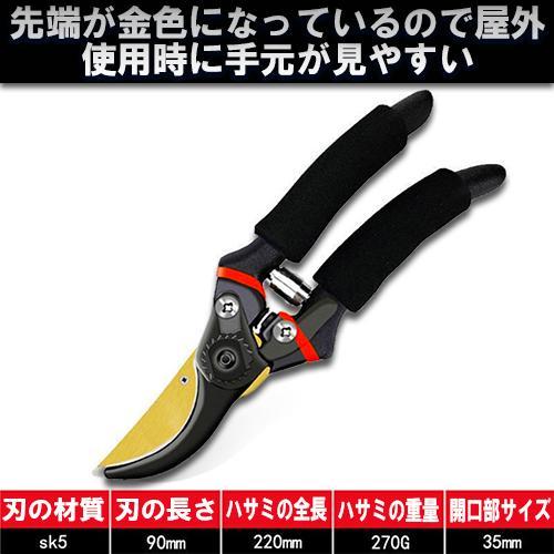 ■カラーブラック 黒■サイズ刃の長さ90mm はさみの全長220mm 開口部サイズ35mm■重量270g■特徴刃の部分には硬さと粘り強さのバランスがとれたSK5鋼を使用。フッ素コーティングにより、長期間使っていても錆びにくい表面となっております。湾曲したデザインで握りやすく、疲れにくい設計となっております。■注意事項さび止めの為に油を刺していますが、グリップ部分まで染みる可能性がございます。手袋を使用する事を推奨いたします。