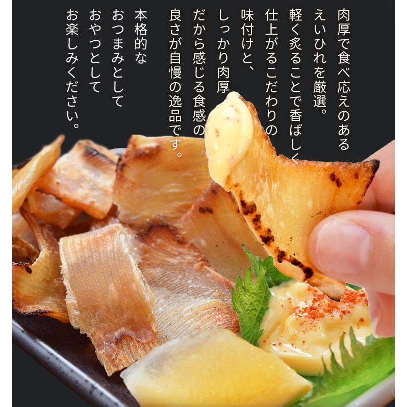 エイヒレ 食べごたえ抜群の肉厚えいひれを厳選しました。味付け済みなので軽く炙っておつまみやおやつに、お醤油や七味マヨネーズもよく合います