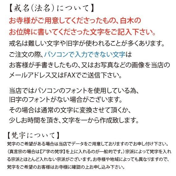 お寺様がご用意してくださったもの、白木のお位牌に書いてくださった文字をご記入下さい。