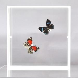 蝶の標本 ウラモジタテハ Diaethria 2頭 ホワイトフレーム チョウ バタフライ パピヨン