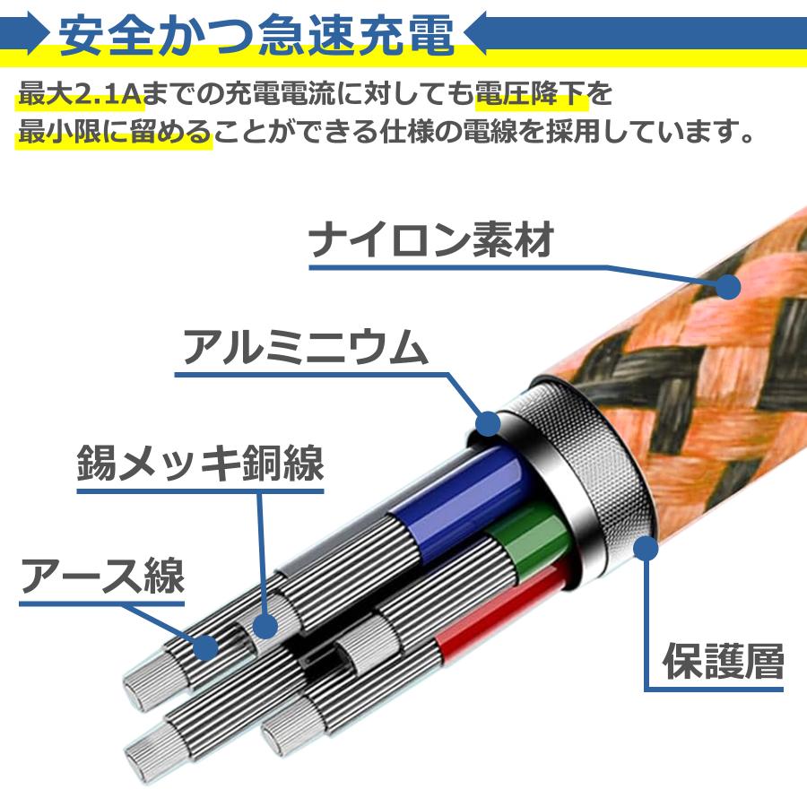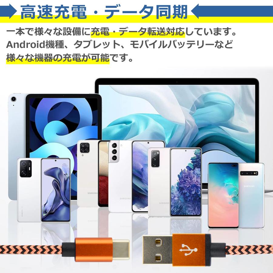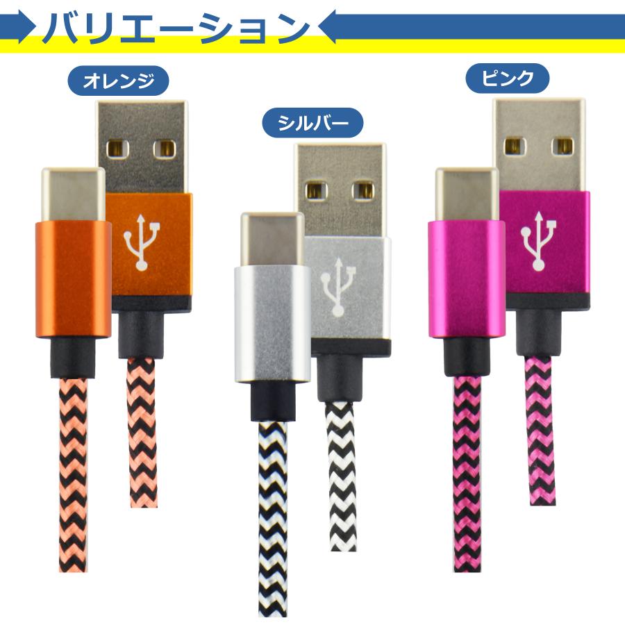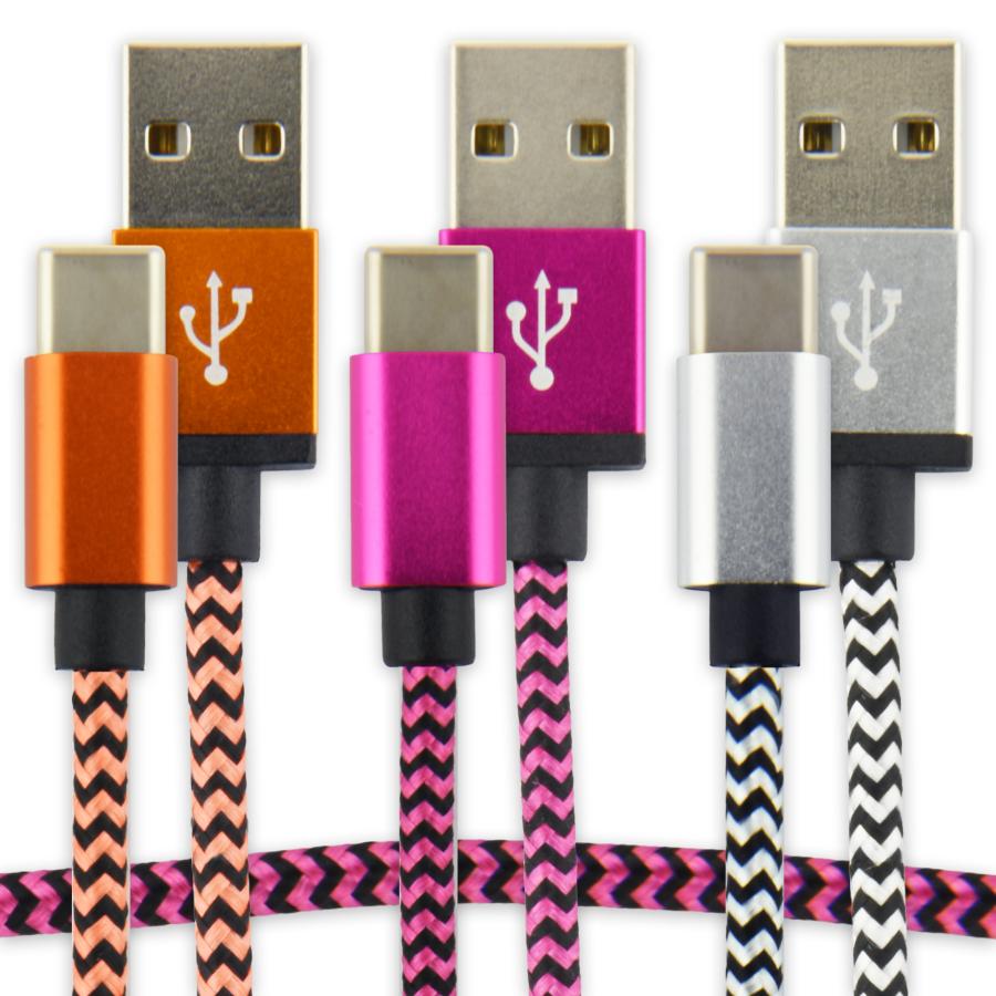 充電やデータ転送ができるナイロン製タイプC充電ケーブルです。