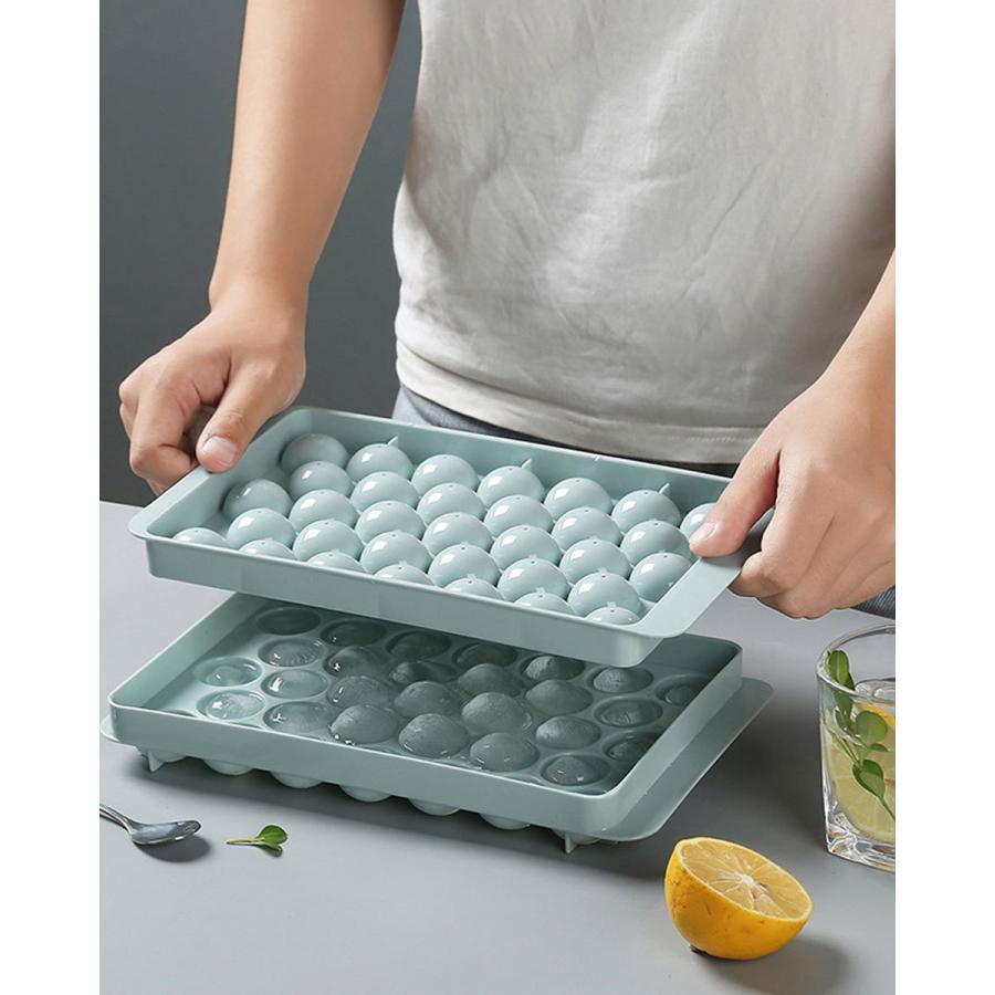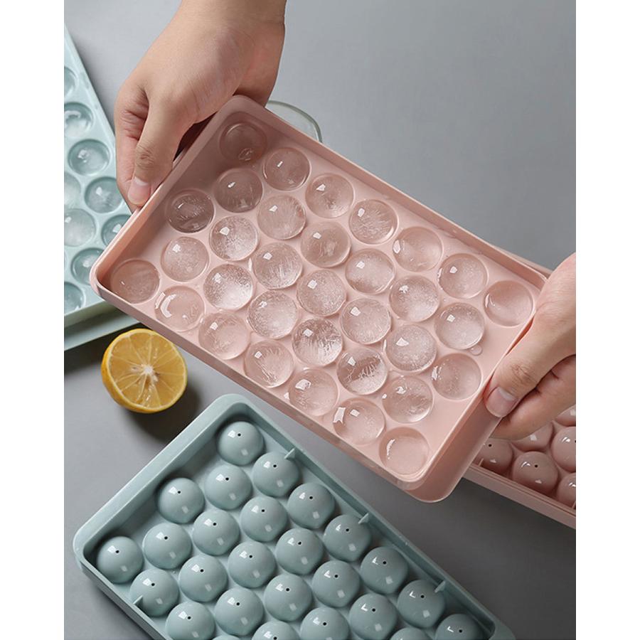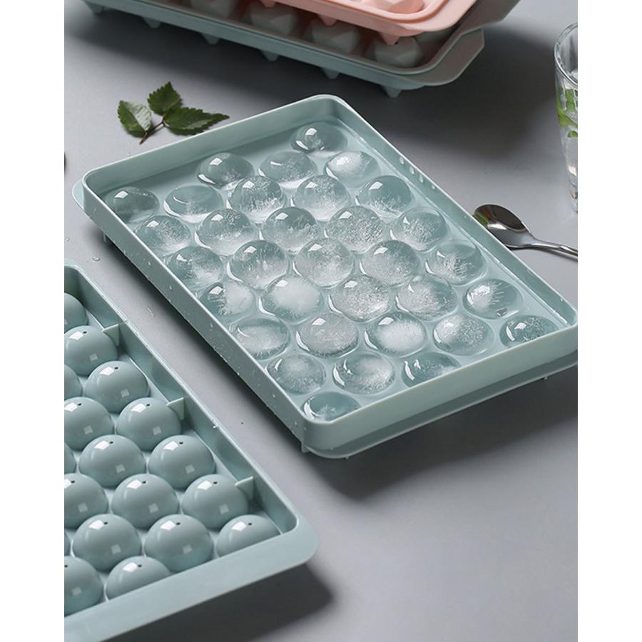 32個の氷を1回で作ることが出来るアイスボールメーカー。普通に氷を作る手順で、ご家庭の冷凍庫で丸い氷を作ることが出来るアイスボールメーカーです。