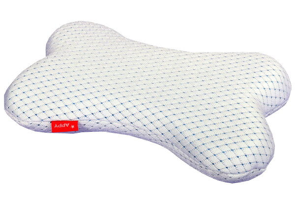 熱伝導性の高いポリエチレンという糸使いで、熱を空気中に拡散することで、冷たく感じます。室内の、空調である程度室温がおさえられた場所で、ワンちゃんネコちゃんにとって快適なまくらです。