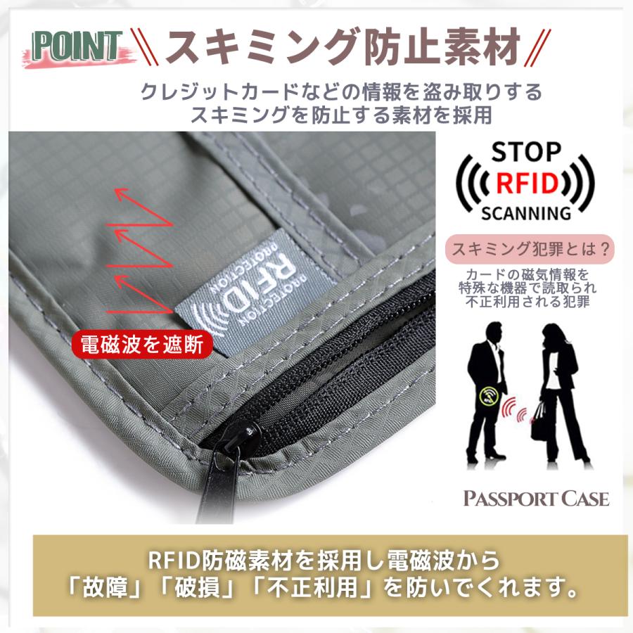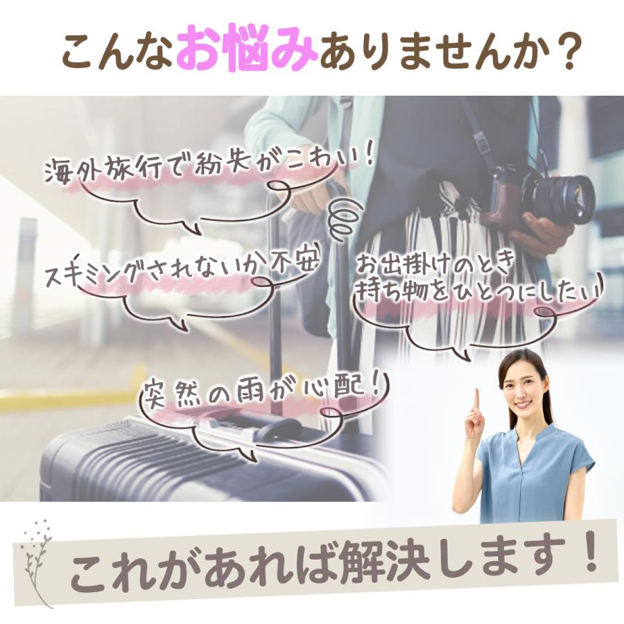 旅先や日常使いにもぴったりなこのポーチは、収納力と防犯性を両立。防水かつスキミング防止機能を備えたRFIDブロッキング素材を使用し、大切なパスポートやクレジットカード、現金をしっかりガードします。これで「不正利用」や「故障」といった心配から解放されます。