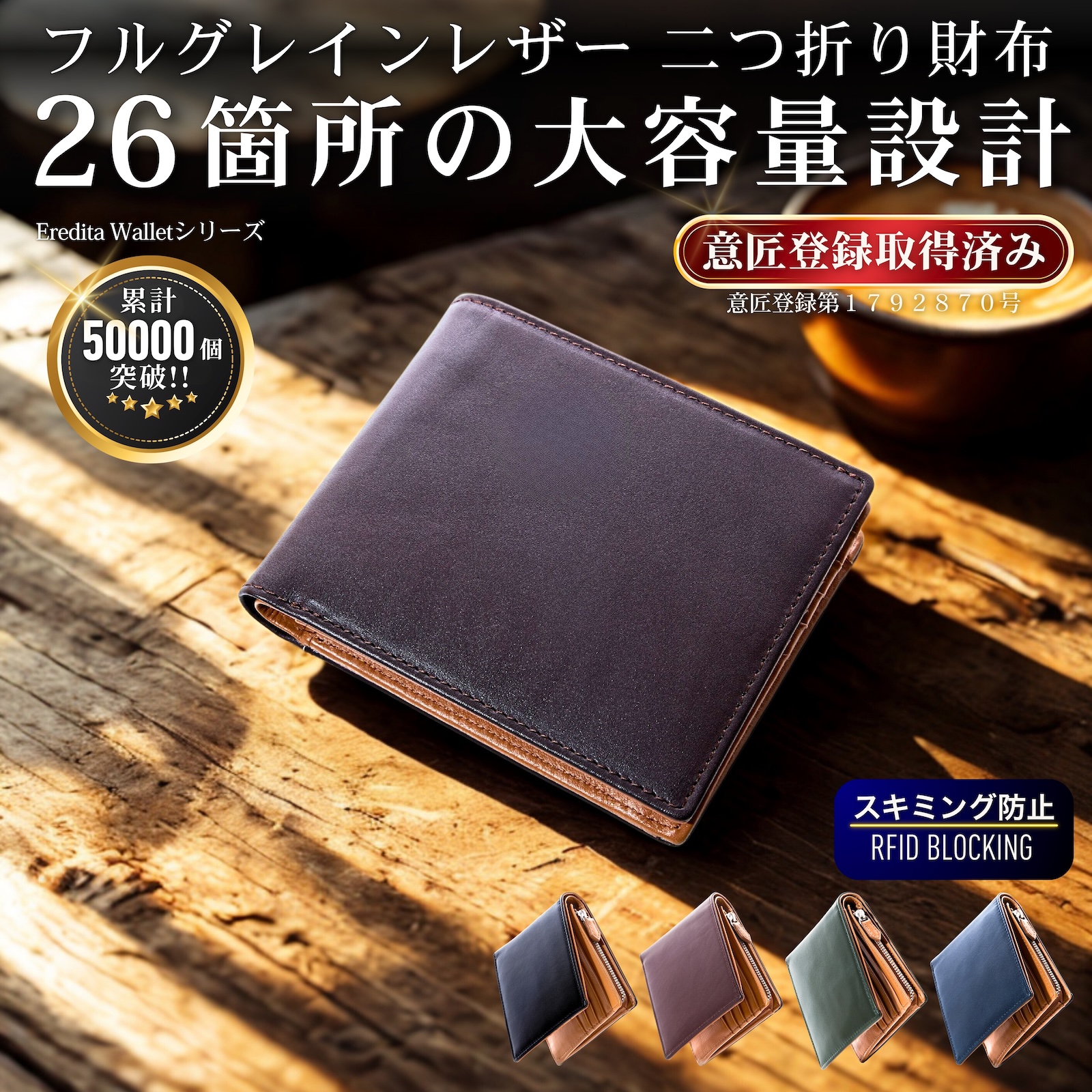 Eredita エレディータ | 財布 メンズ 二つ折り 大容量 カードがたくさん入る メンズ財布 L字 YKK ファスナー 小銭入れあり スキミング防止