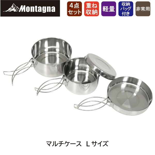 モンターナ Montagna HAC3020 ステンレスアウトドアクッカー4点セット【キャンプ用食器 キャンプクッカー 調理道具 鍋 フライパン 蓋 収納 コンパクト】
