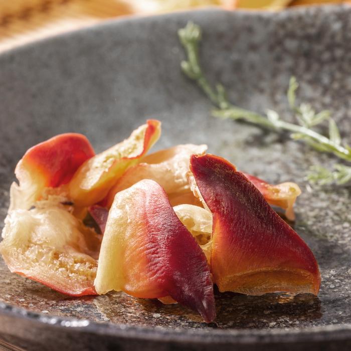 ほっき貝は旨味の強い貝。まずは口の中でふやかしてからじっくり噛んで、あふれ出る旨味を心ゆくまでお楽しみください。ゆっくり食べれば食べるほど美味しさを感じられます。 1粒を3分程かけてお召し上がりいただくのがおすすめです。