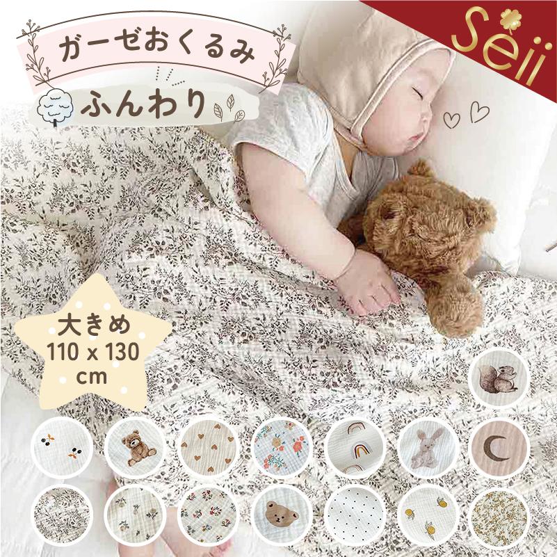 ・肌にやさしいガーゼ素材で、通気性、吸水性もよく、蒸れにくい快適!・赤ちゃんの肌にやさしいふんわりやわらかく・使えば使えるほどやわらくなる。デリケートな赤ちゃんの肌にも安心!・毛布やタオルケットがわりに、またおむつ替えシートやプレイマット、授乳ケープとしても使えます♪・折りたたむとコンパクトになるため手軽にどこでも持ち運べます。・胎内にいるときに近い姿勢で包み込むように巻けるので、赤ちゃんも安心。・出産祝いなどのプレゼントにもおすすめです。