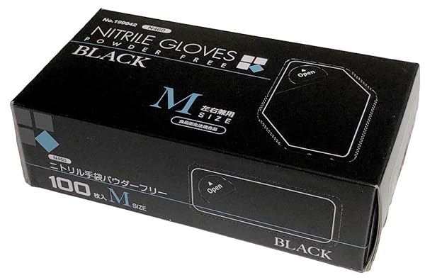 [水野産業] 食品衛生法適合 ニトリルグローブ 黒 ブラック パウダーフリー 100枚入 N460