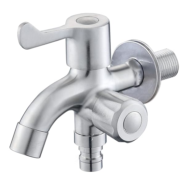 Jeonestan 二股蛇口 ステンレス製 双口 洗濯機用水栓 シングルレバー 2口 分岐栓 分岐付き 交換 双頭 水道栓 標準G1/2接続ホース付き 二口横水栓 表面処理 耐食性 洗濯/お風呂/洗面所/浴室/キッチン/ベランダ/ガーデン/屋外用