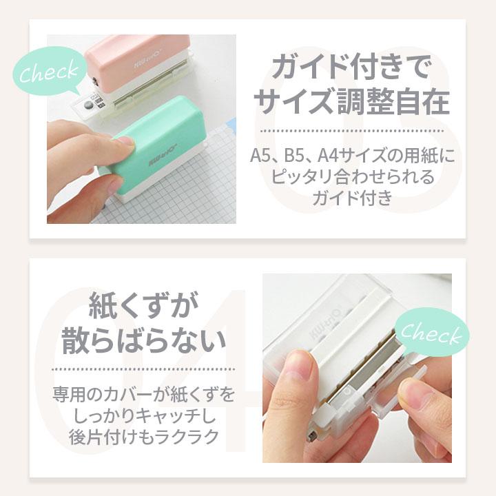 1.用紙をメモリに合わせて、パンチを押し下げて穴をあけます