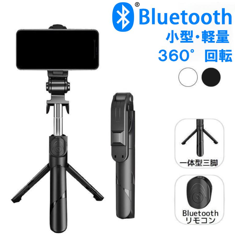即納 最新型 100cm セルカ棒 自撮り棒 自撮りスマホ棒 スマホ スタンド 三脚付き Bluetooth リモコンシャッター 6段階伸縮 360度回転 iphone Android 黒 白