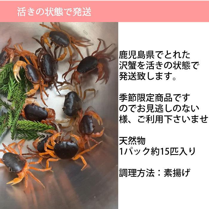 鹿児島県もしくは宮崎県などでとれた沢蟹を生きている状態で発送致します。天然物 1パック約15匹入り オススメの調理方法:素揚げ【関東は発送日より最短翌日14時以降お届けが可能となりました。関東のお客様は、14時以降のご指定をオススメいたします。】