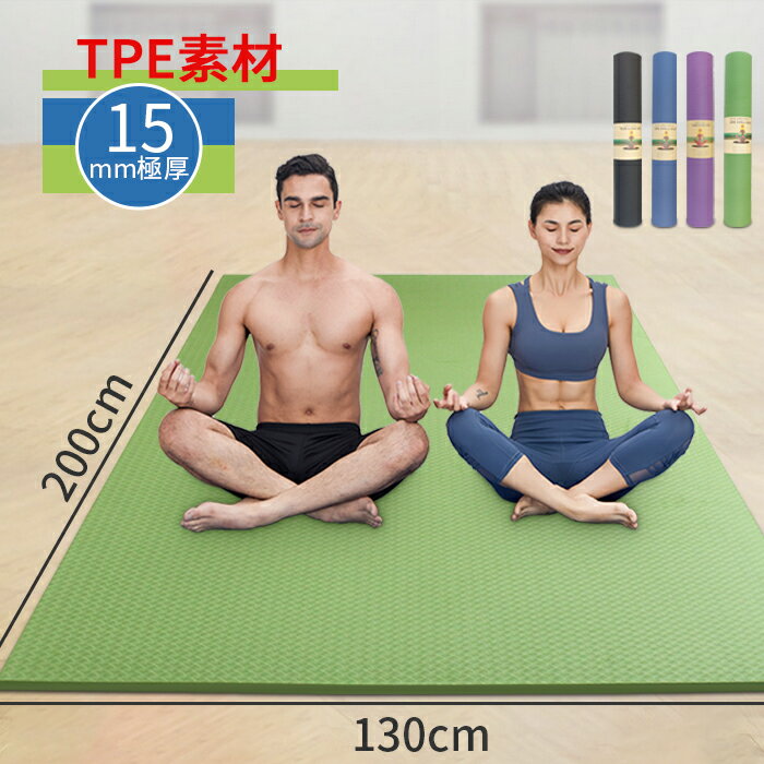 YUREN ヨガマット 二人用 TPE素材 ヨガマット 幅広 200*130cm 厚さ15mm 特大