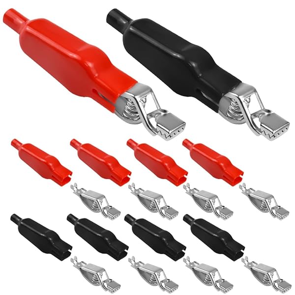 ZADAFINA 絶縁バッテリークリップ 10個セット(黒 +赤 各5個)ワニ口電気テストクリップ 鰐口クリップ プラスチックカバー 耐久性 電気テスト 絶縁カバー クリップ 80mm長さ 20A