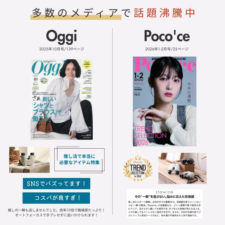 ・レンズと目の距離が離れても綺麗に見え、メガネのままで使用可能。