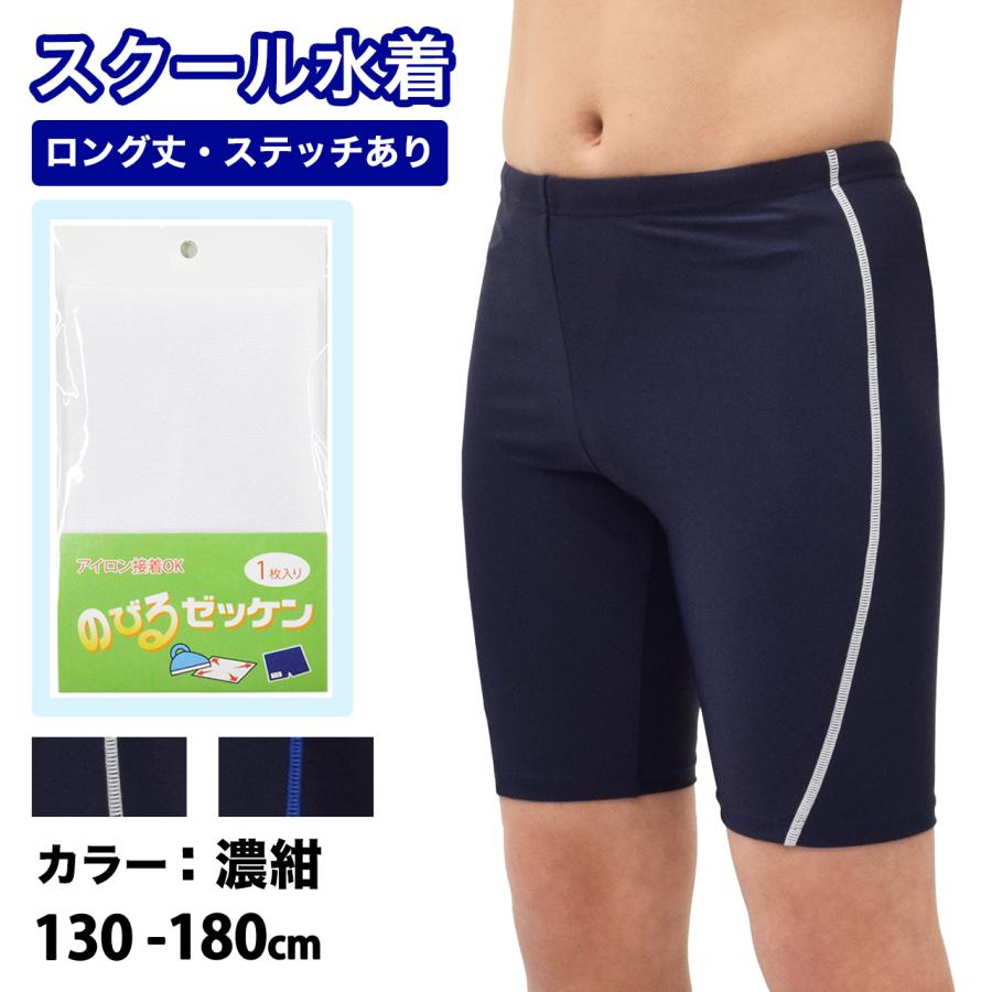 スクール水着 男の子 男子 短パン ロング丈 ジュニア 男児 スクール水着 小学校 中学校 130 140 150 160 170 180cm ネイビー ブルー ホワイト