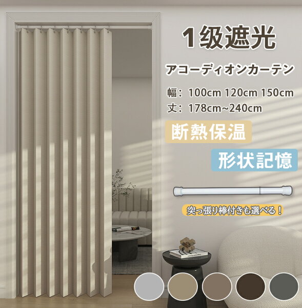 【一部20%offから更に割引】【既製・即納】間仕切りカーテン アコーディオンカーテン 一級遮光 突っ張り棒付き 断熱 …