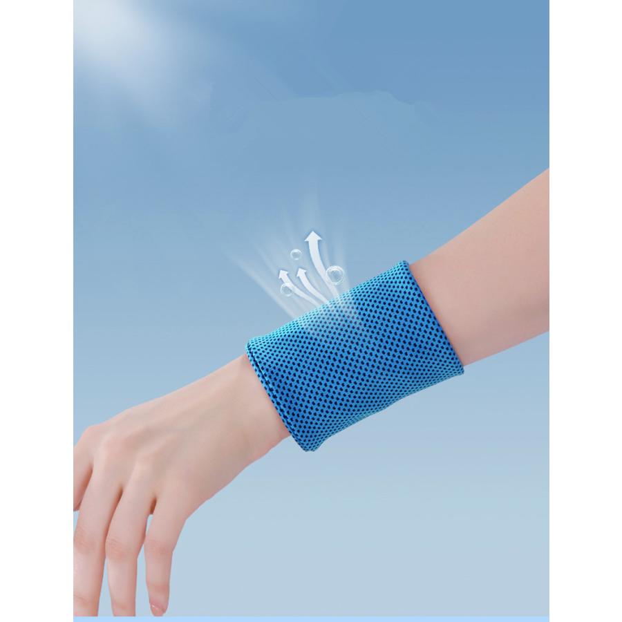 【冷感】リストバンドはアイスシルク材質を採用して、肌と接触した瞬間に温度を3−5度を下がる涼しい冷感、汗を吸収しやすく、清涼感超群です。