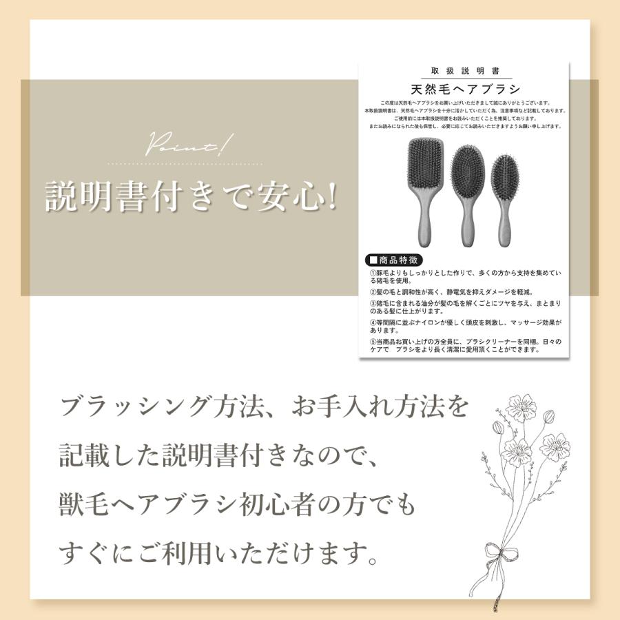 説明書も付いているので、初めての天然毛ブラシでも安心してお手入れできます。