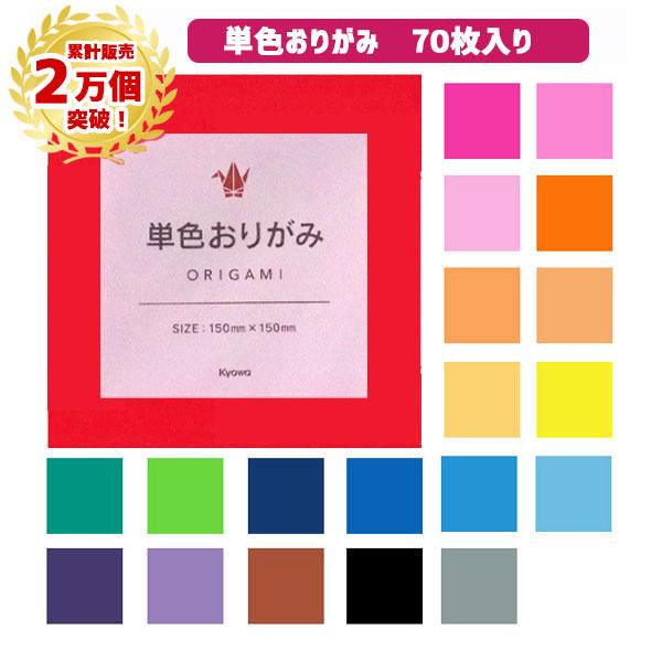 おりがみ 単色 70枚 15×15cm 金銀は15枚 折り紙 赤 青 黄色 緑 ピンク 黄緑 水色 黒 紫 桃色 橙 茶色 灰色 白 折紙 無地 子供 幼稚園 保育園
