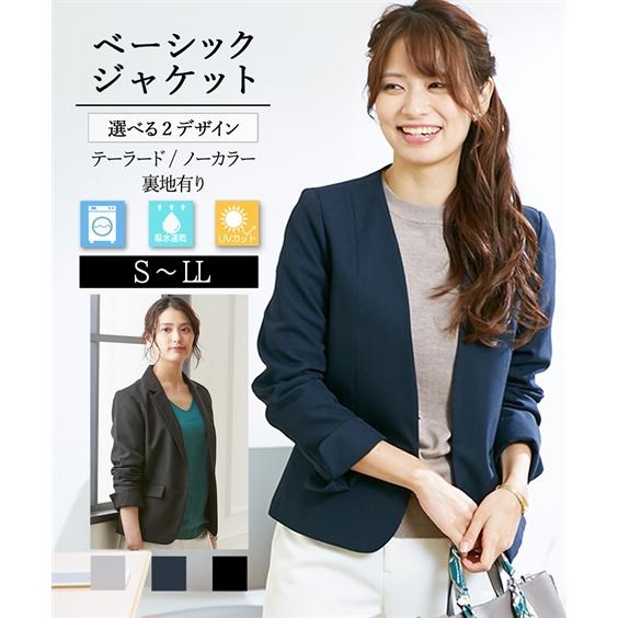 アウター レディース ジャケット 洗える テーラード ノーカラー ジャケット S-LL UV 吸水速乾 裏地あり ニッセン o0 ビジネス 7days