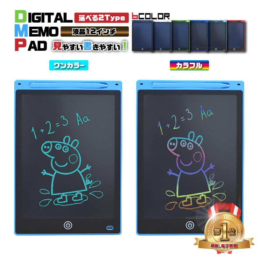 電子メモパッド メモ帳 パット 12インチ 勉強 お絵描きボード 薄型 軽量 小型 ペーパーレス お絵かき 子供 メッセージ
