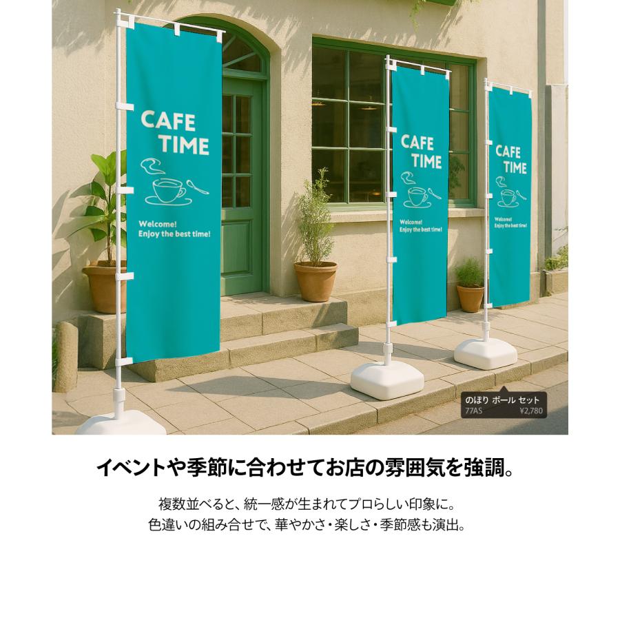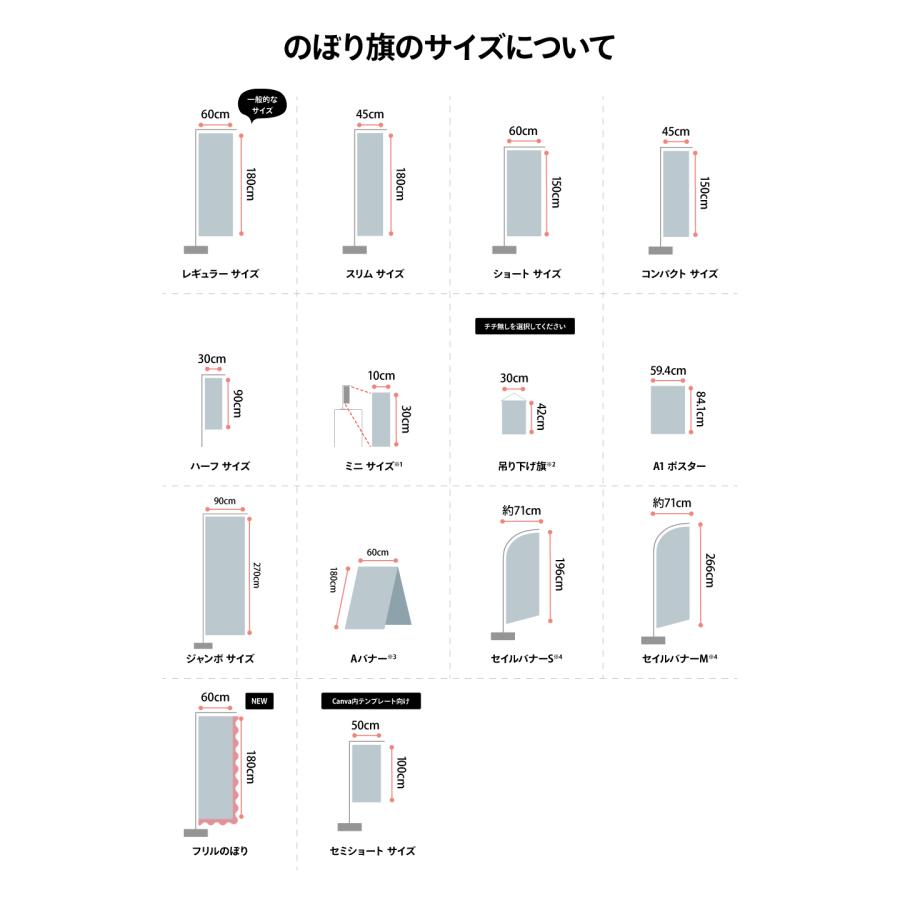 情報を詰め込みすぎず、大きくシンプルにデザインすると目にとまるのぼり旗になります。