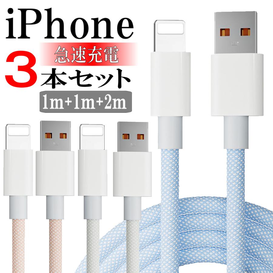 iPhone 充電ケーブル ライトニング lightning 充電器 スマホ 充電器 アイホン iPad コード 携帯 USB 急速充電 3本セット