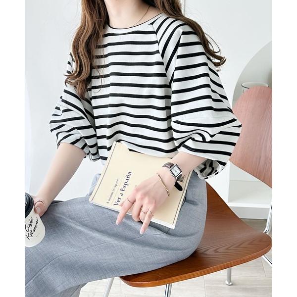 商品名:着心地もデザインにもこだわった一枚。ランタンスリーブカットソー