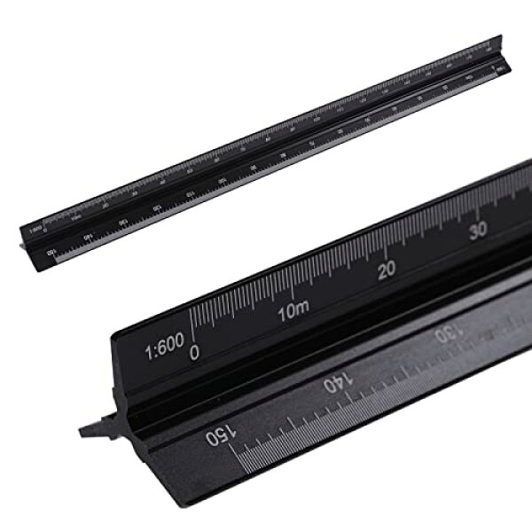設計図や地図など縮尺図面の読み取りや作成に便利な、三角スケール。一つの面に対し、2種類の目盛りがついているので6種類の異なる縮尺の図面を測ることができます。1:100/200/250/300/400/500が測れるラージスケールと1:20/25/50/75/100/150が測れるスモールスケールの2サイズ展開です。ご用途や図面に合わせて目盛りをお選びください。建築家、エンジニア、学生、請負業者向けのアプリケーションやアーキテクチャ、青写真、テクニカルイラストレーションに最適です。手におさまりやすい三角柱の掴みやすい形状により作図や寸法確認が容易に行えます。反りや歪みなど変形しにくいアルミニウム合金製で長期間お使いいただけます。またレーザーカットメートル法印刷で刻印された鮮明で読みやすい目盛りは頻繁に使用した後でも色褪せにくくなっています。サイズ(約):32.5cm x 2cm