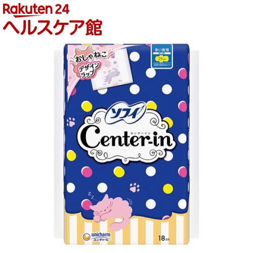 ユニ・チャーム センターイン ふわふわ 多い夜用 羽つき 29cm 18枚入【公式ショップ】生理用ナプキン かわいい猫デザイン ふわふわタイプ やわらかラップ