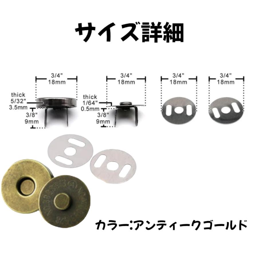 差し込みタイプのマグネットホックボタンが50組セットで登場。サイズは使いやすい18mm。カラーはアンティークゴールドで高級感があり、ハンドメイドや手芸作品を上品に仕上げてくれます。裁縫・DIY・手作り雑貨・小物入れ・バッグ・ポーチなど、幅広い用途で活用可能。凹凸パーツと座金がすべてセットになっているので、届いてすぐに使えます。手芸初心者からプロまでおすすめの金具パーツ。