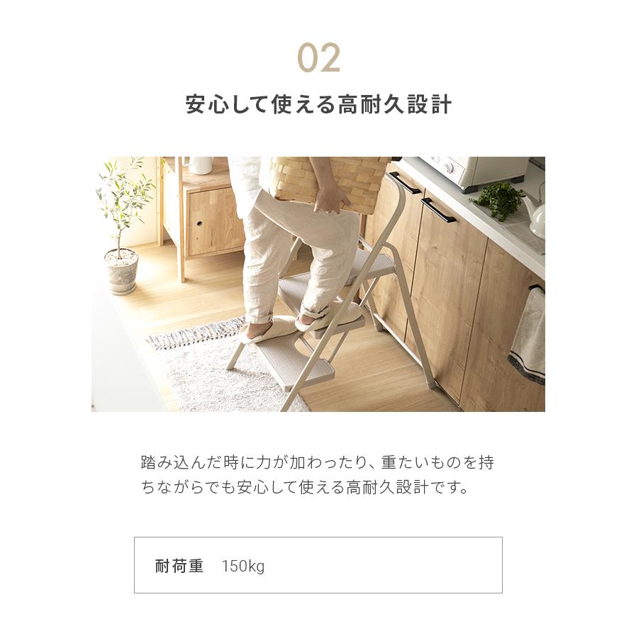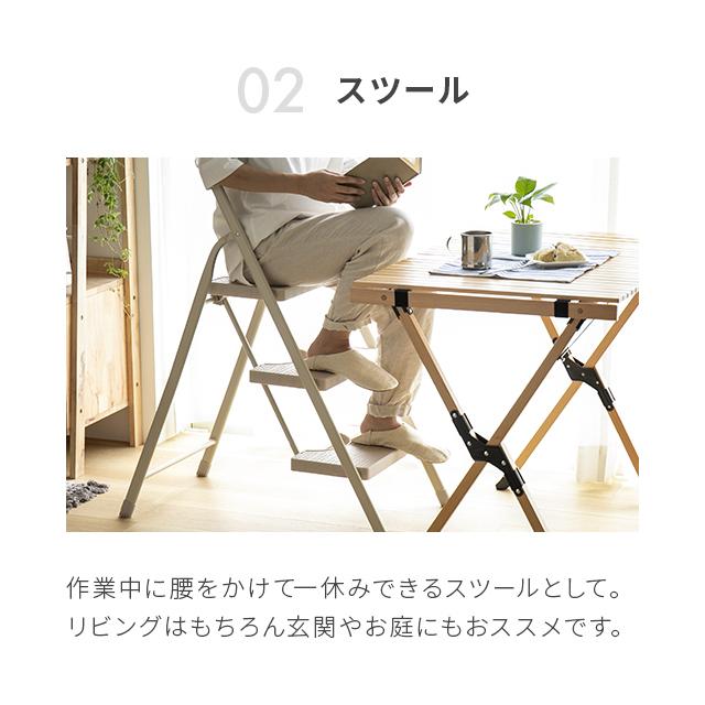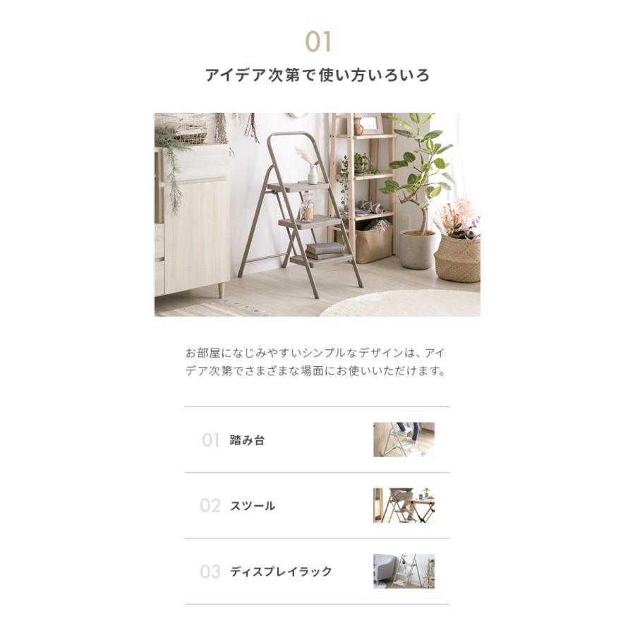 踏み台 脚立 折りたたみ おしゃれ 3段 オフホワイト ステップ台 ステップチェア 折りたたみステップ ステップスツール 大掃除 洗車台 モダンデコ