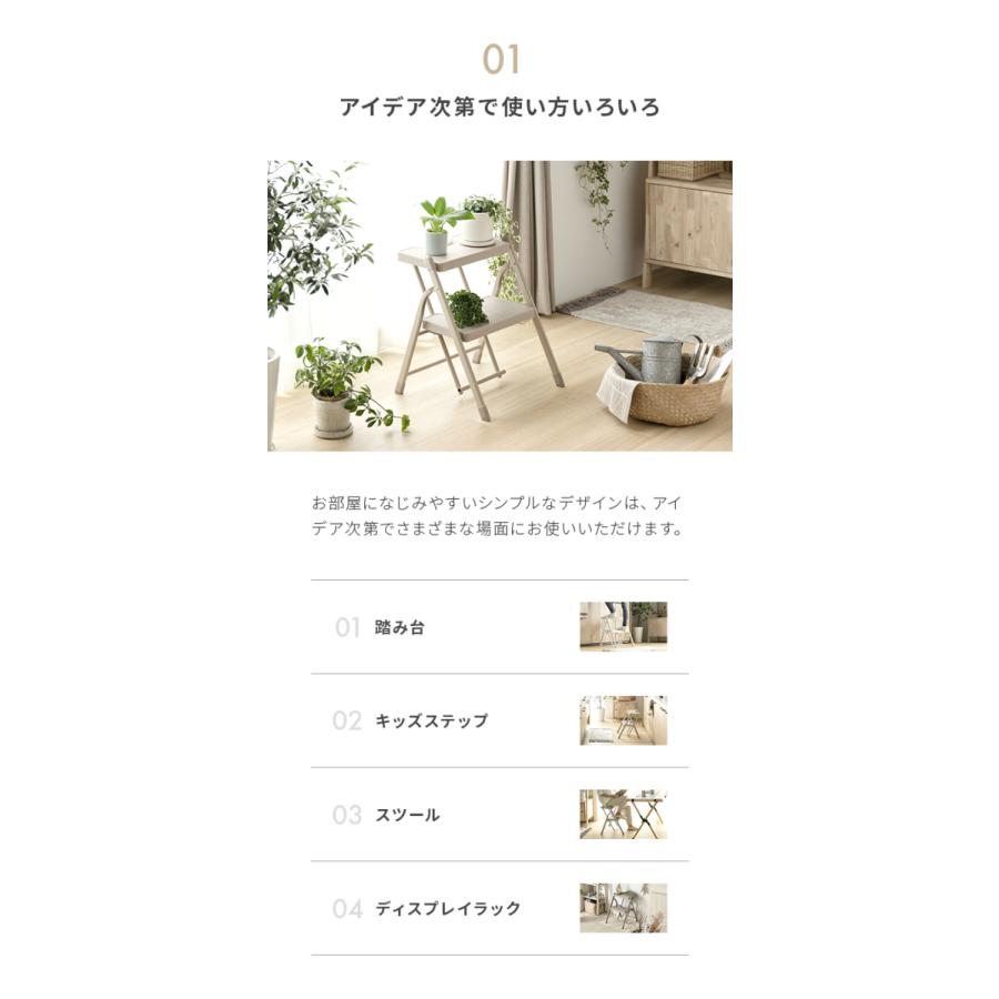 踏み台 脚立 折りたたみ おしゃれ 2段 オフホワイト ステップ台 ステップチェア 折りたたみステップ ステップスツール 大掃除 洗車台 モダンデコ 爆買