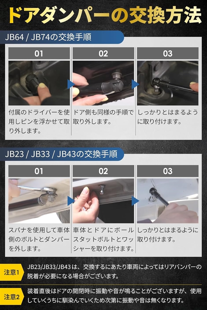 「らくらく3分で簡単設置」:JB64/ JB74は付属のドライバーを使用 して元々使用していたダンパーを取り外して交換するだけです。
