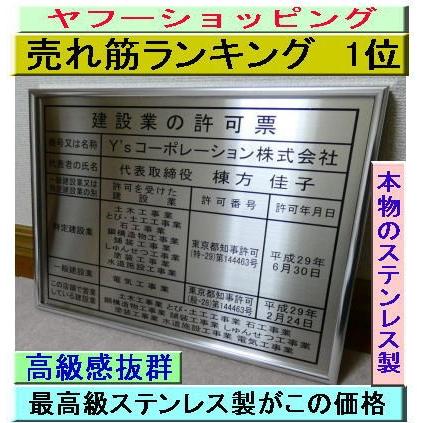 ■シルバー額入り・板面は最高級ステンレスの建設業の許可票