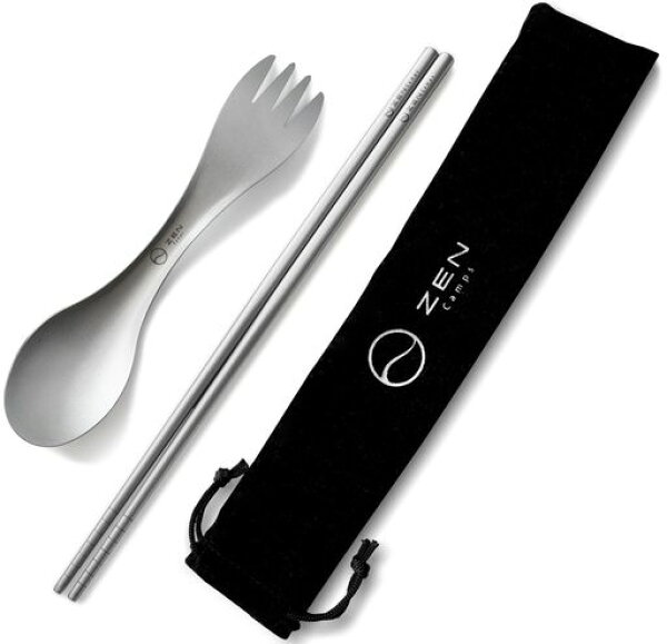 ZENCAMPSチタンカトラリーセット箸スプーンフォーククッカー調理器具超軽量アウトドア登山キャンプ収納袋付