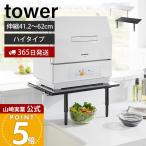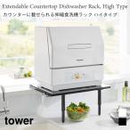 【 レビュー特典あり 】 tower カウンターに載せられる伸縮食洗機ラック タワー ハイタイプ / ロータイプ | 食洗機台 食洗機置き 台 伸縮 カウンターキッチン 山崎実業 カウンター フック付き 収納 キッチン 乾燥機 耐荷重25kg