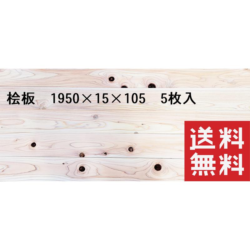 桧板 1950mm(長さ)×15mm(厚み)×105mm(幅)5枚入 檜 ヒノキ ひのき DIY 工作 すのこ 桧板