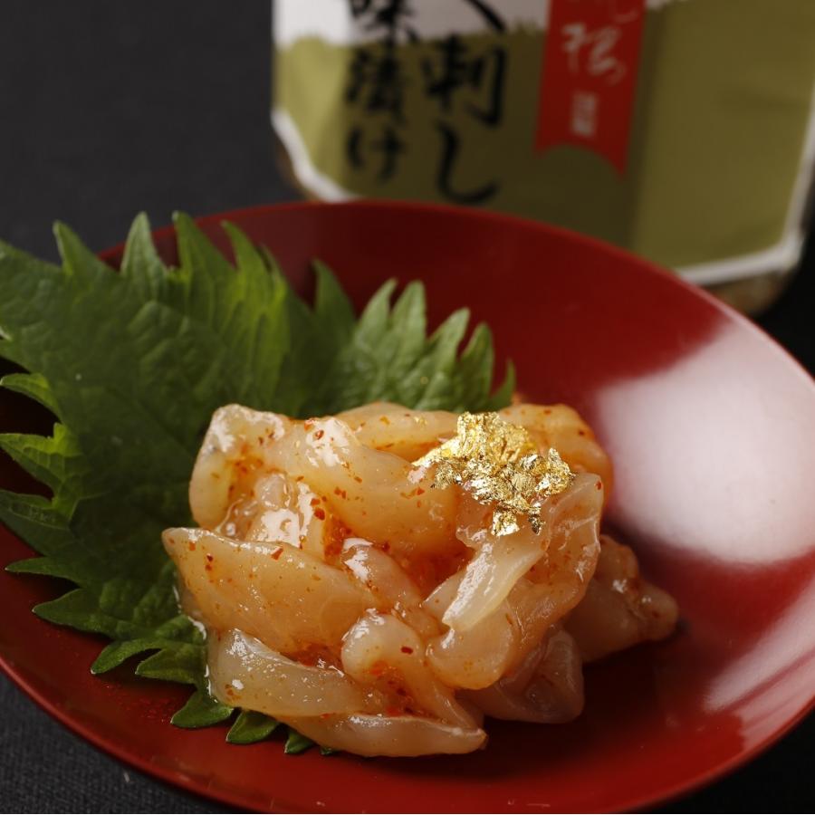 江戸時代の下関は北前船の寄港として栄え、その商家に伝わっていた料理を基に開発したのが、とらふぐ松前漬けです。この松前漬けは、下関の名物とらふぐの刺身に、一口大の数の子を加え、当社独自の醤油のたれに3日間じっくりと漬け込み熟成させ、まろやかに仕上げました。漬け込み時は1日に3回、数の子が崩れないように手でやさしく攪拌しています。