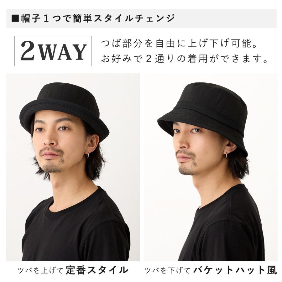 スタイルに合わせてつばは自由に上げ下げでき、シワのつきにくいポリエステル素材だから折りたたみOK!