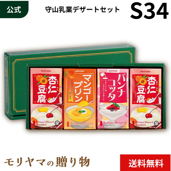 MORIYAMA 夏ギフト S34 モリヤマ デザート セット3種類 4個入 杏仁豆腐 パンナコッタ マンゴープリン 送料無料 熨斗 …