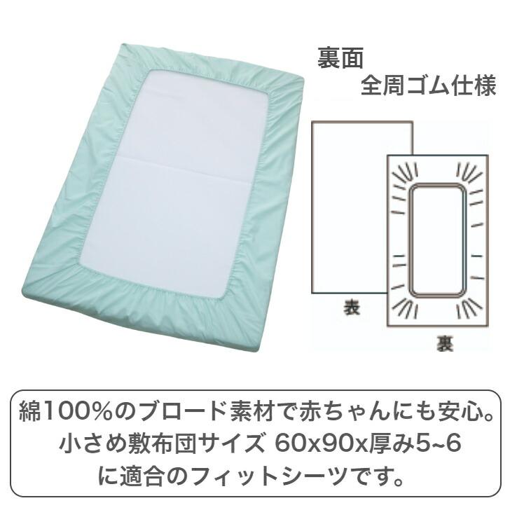 小さめのベビー敷き布団サイズ 60x90 厚み5〜6cmに適合のフィットシーツです。