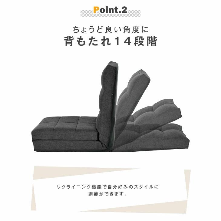 ・背もたれは14段階調節でお好みの角度に設定可能
