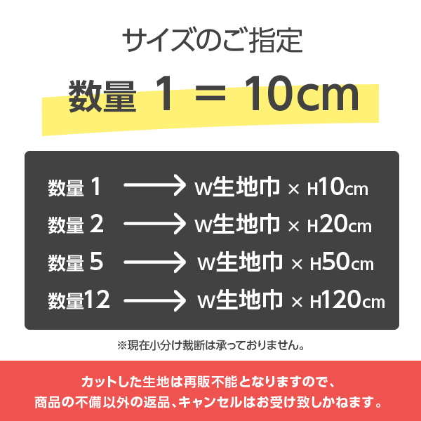 生地の長さ : 最低カット10cm以上、10cm単位切り売り