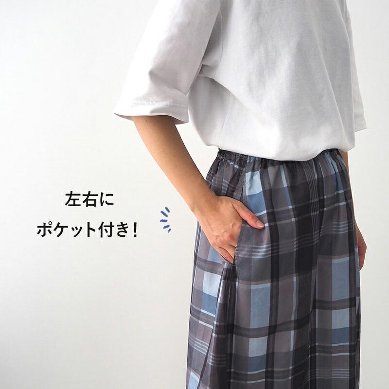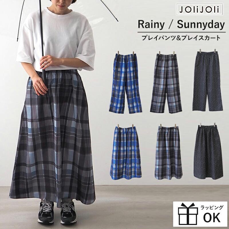 撥水 ゆったり パンツ ズボン スカート 薄手 マドラスチェック チェック ウエストゴム ゴムパンツ ゴムスカート JOliJOli ヘミングス