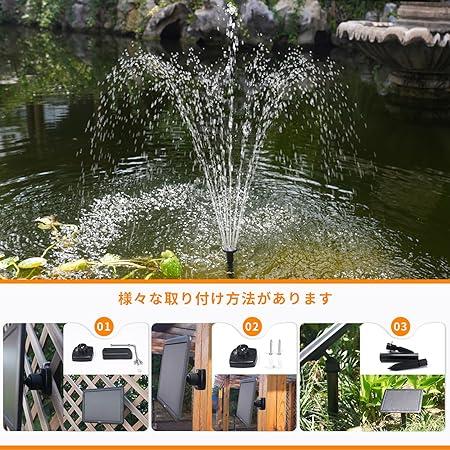 ★【ハイブリッドソーラーポンプとは】日中の太陽エネルギーとソーラーパネルで蓄電したエネル ギーを利用して噴水を作る装置です。様々な天候に応じてスマート制御によってポンプを動か し、日没後まで安定した動作を行います。ポンプの流量は自動調節のため弱くなった場合でも 故障ではありませんのでご安心ください。★日没以降、ソーラーパネルに光が当たらない状態でも充電池の残量に応じてポンプは動作 を続けます。充電残量が十分にある場合は約3時間後に停止します。